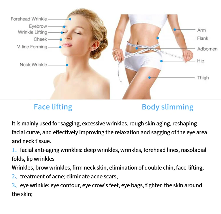 - Multiple Treatment Area wrinkles and loose skin on the face, around the eyes and on the body.